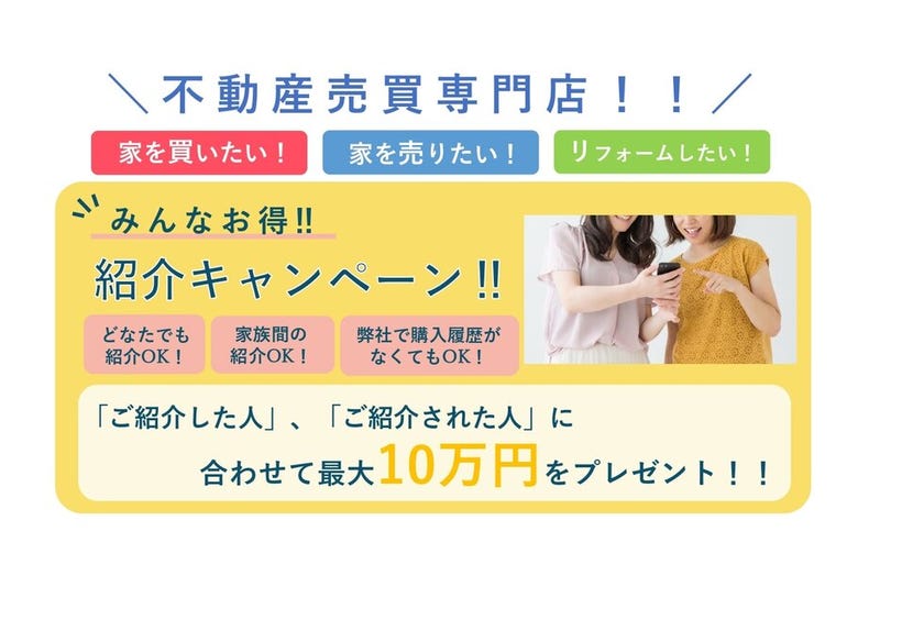 2020年6月より始まった 当社限定の「紹介キャンペーン」!! 現在もたくさんの方にご利用頂いております!(*^^*)✨ お2人合わせて最大 10万円をプレ...